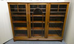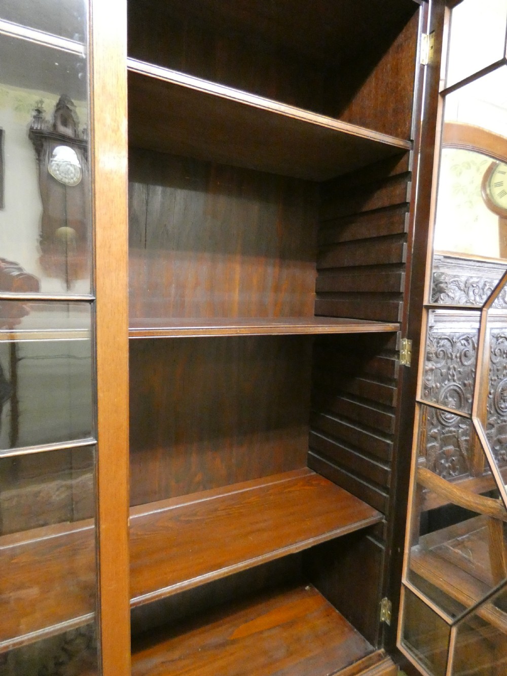 Minor marks / scuffs commensurate with age but overall this lovely quality cabinet bookcase is in very good, clean condition, it is a heavy and well made piece affording copious display / storage of either books or ornaments.,
