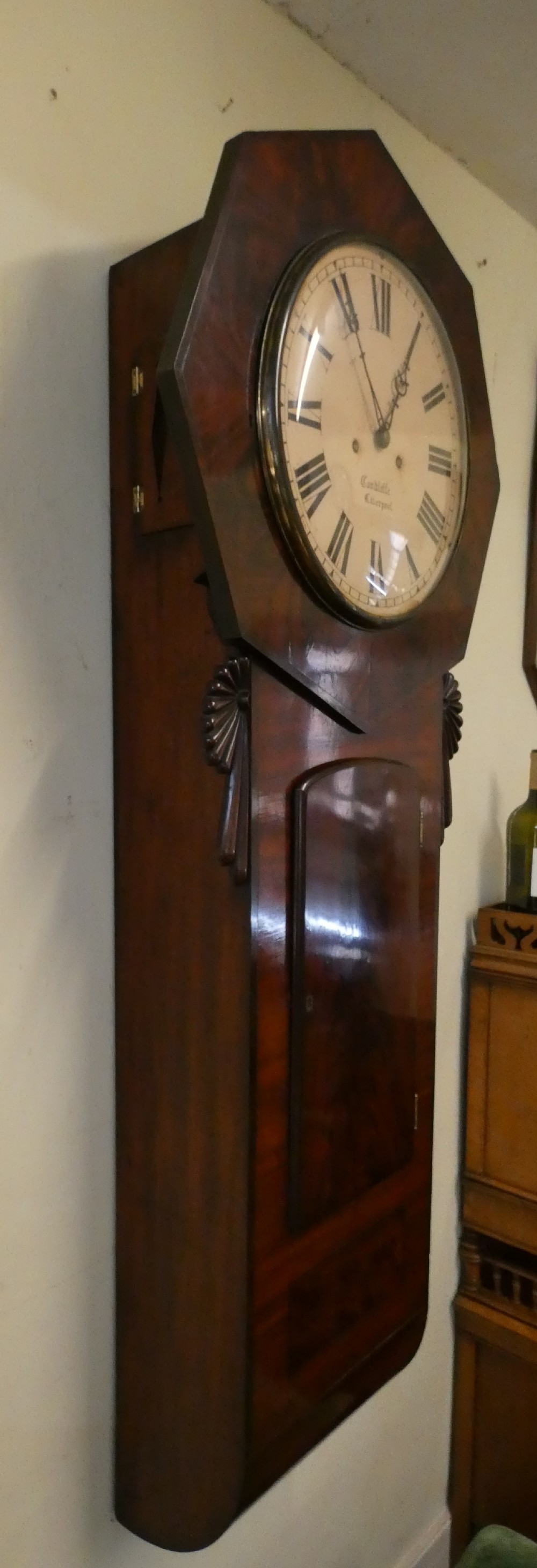 Norwich style tavern wall clock by James Condliffe, Liverpool circa 1850.