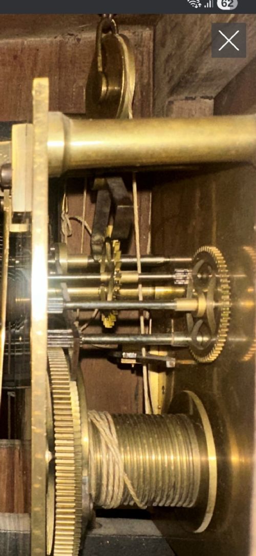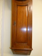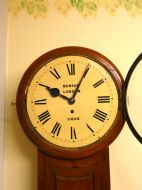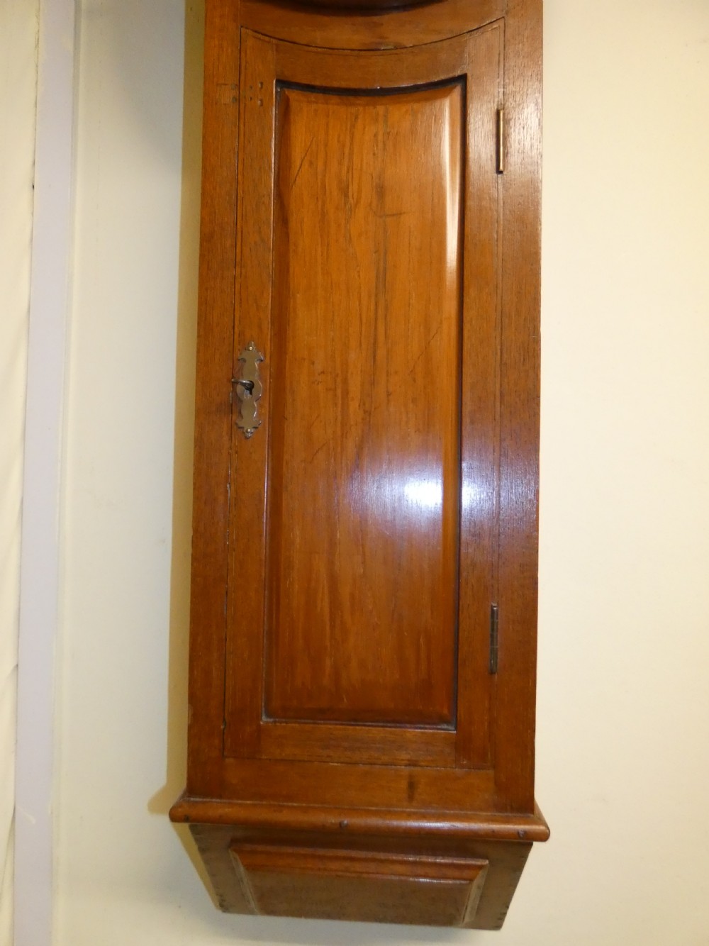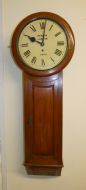 The oak case with full length trunk door, 13" painted dial with makers name and station number 11606. The eight day regulator movement with deadbeat escapement and maintaining power is stamped on the back with the makers name and the station number and is in good working order.