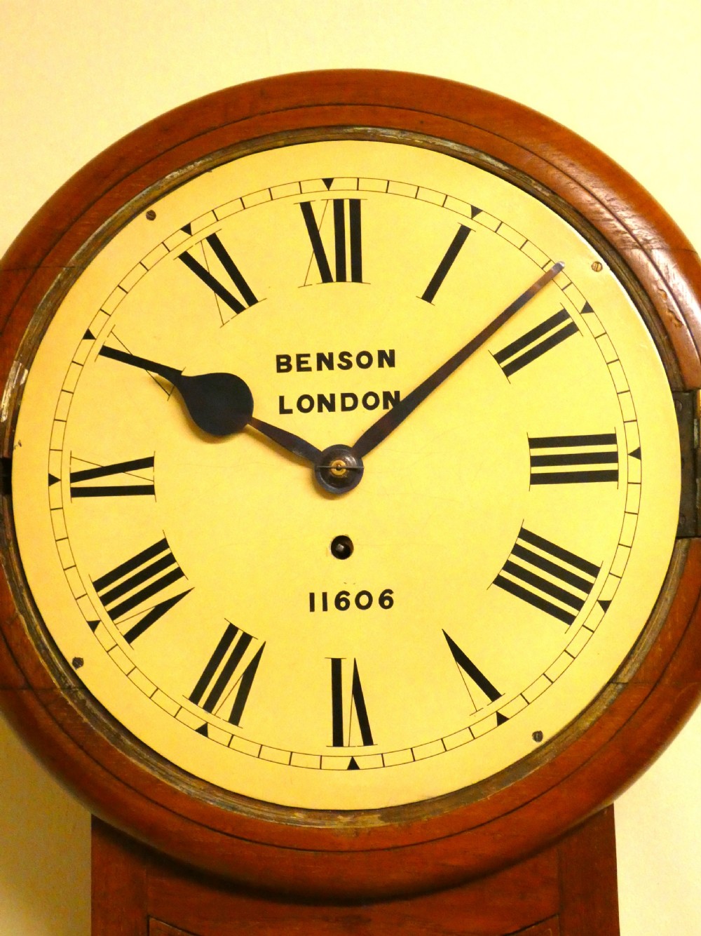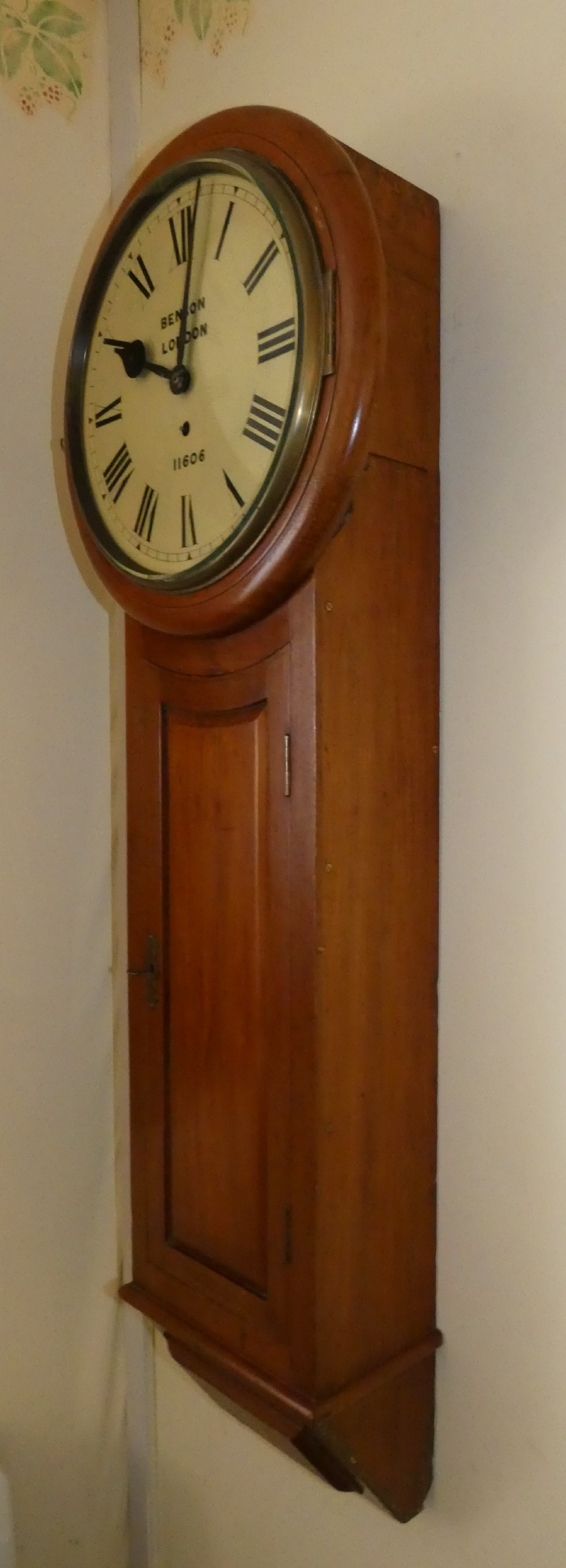 Good quality late 19th century railway regulator wall clock by JW Benson , London .