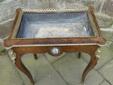With marks / scuffs etc commensurate with age and use, some natural light fading to the polish to one side and a couple of cracks to the plaque at the back but otherwise this lovely jardinière is in good condition and is a really decorative yet functional piece of furniture.