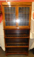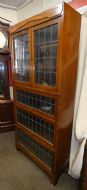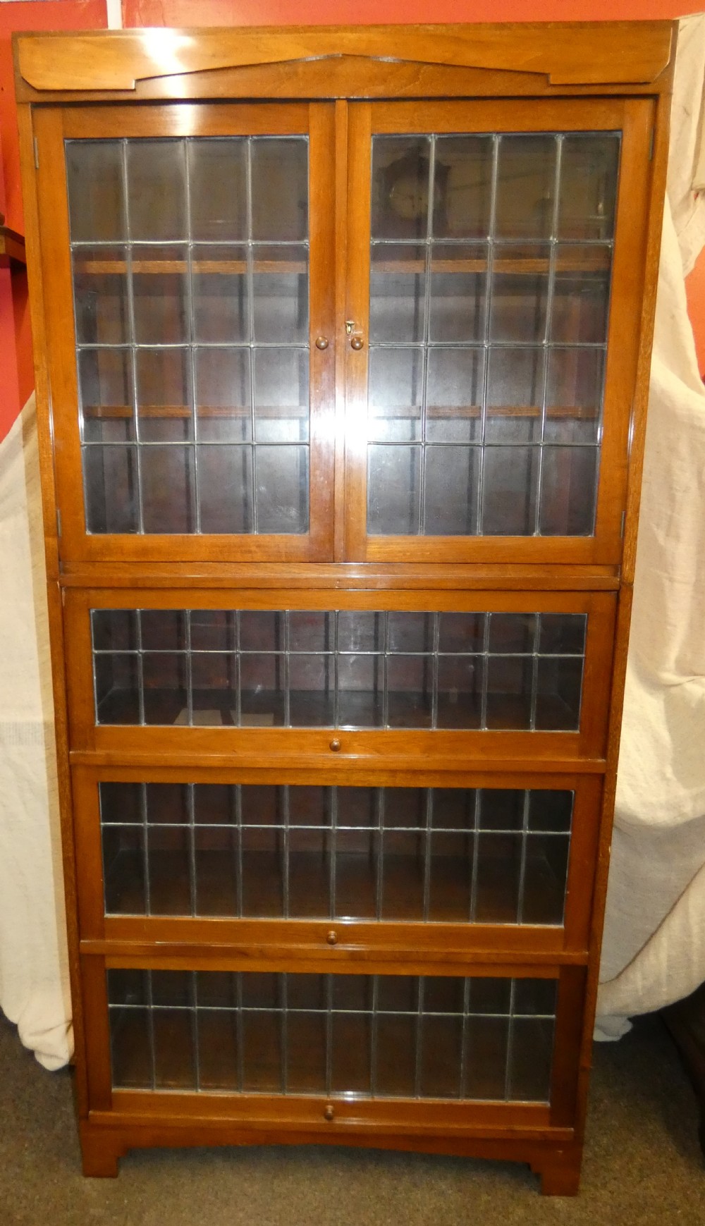 This example actually comes in two parts, the top with two leaded glass doors opening to a shelved interior. The base has three lift up leaded glass doors of varying heights.