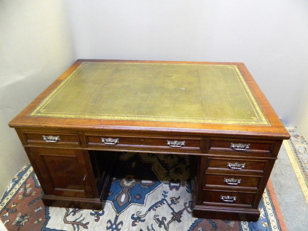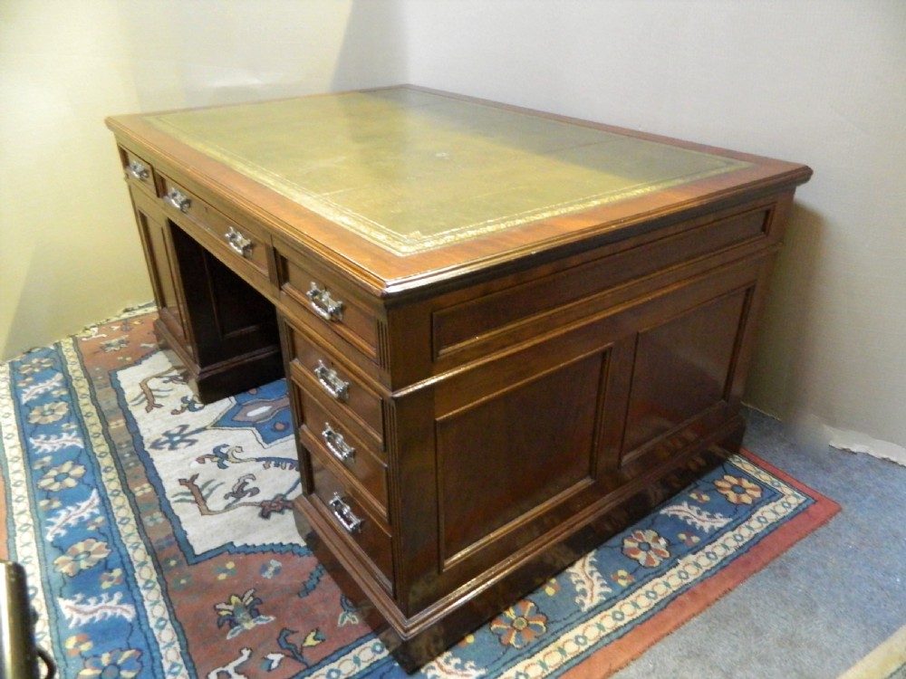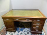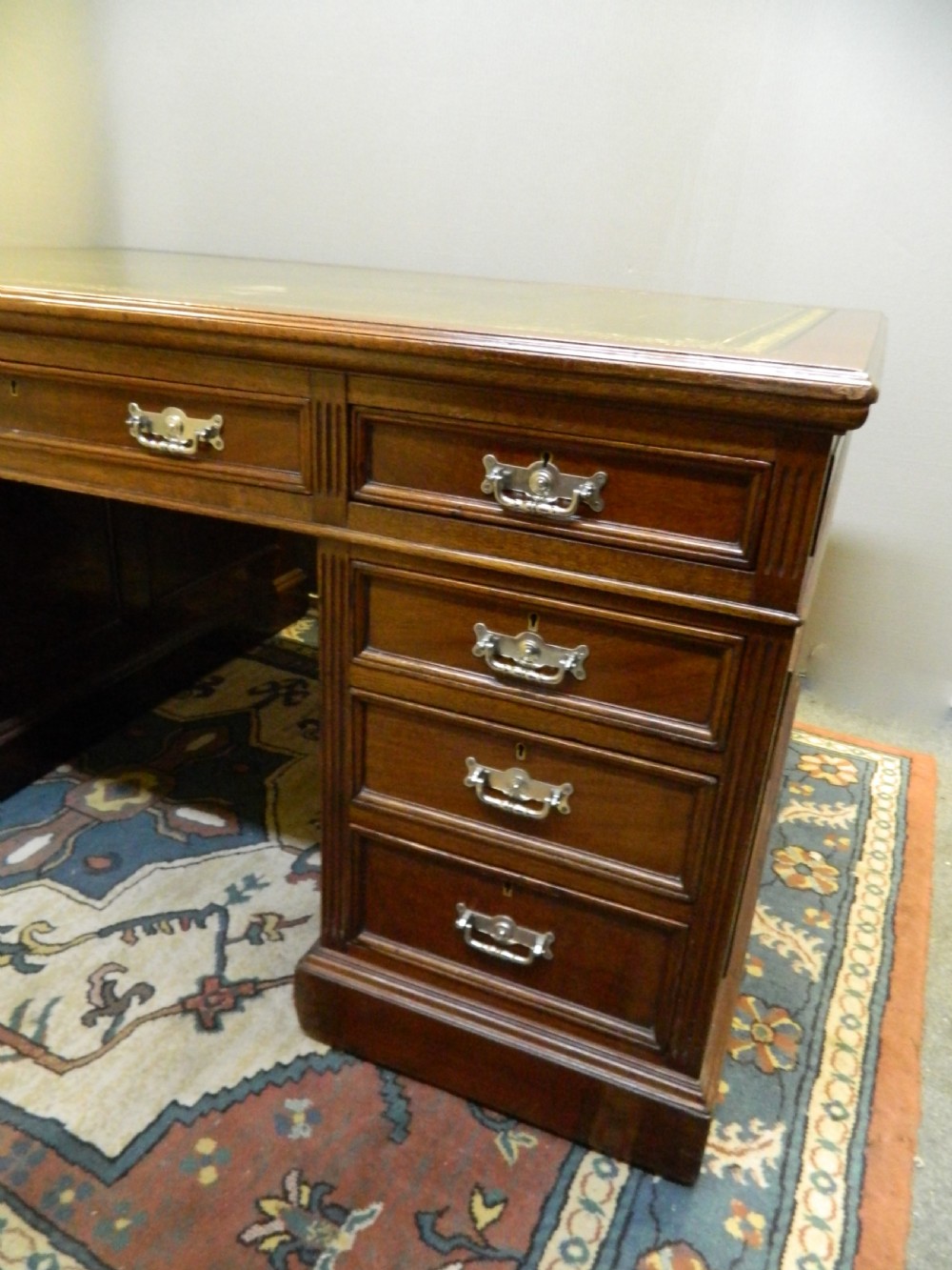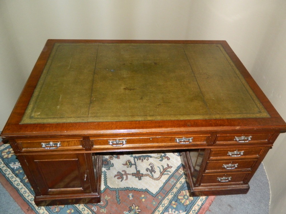 with marks / scuffs to the woodwork and some wear to the leather writing surface but nothing to detract from this handsome desk which is overall good, sound condition.