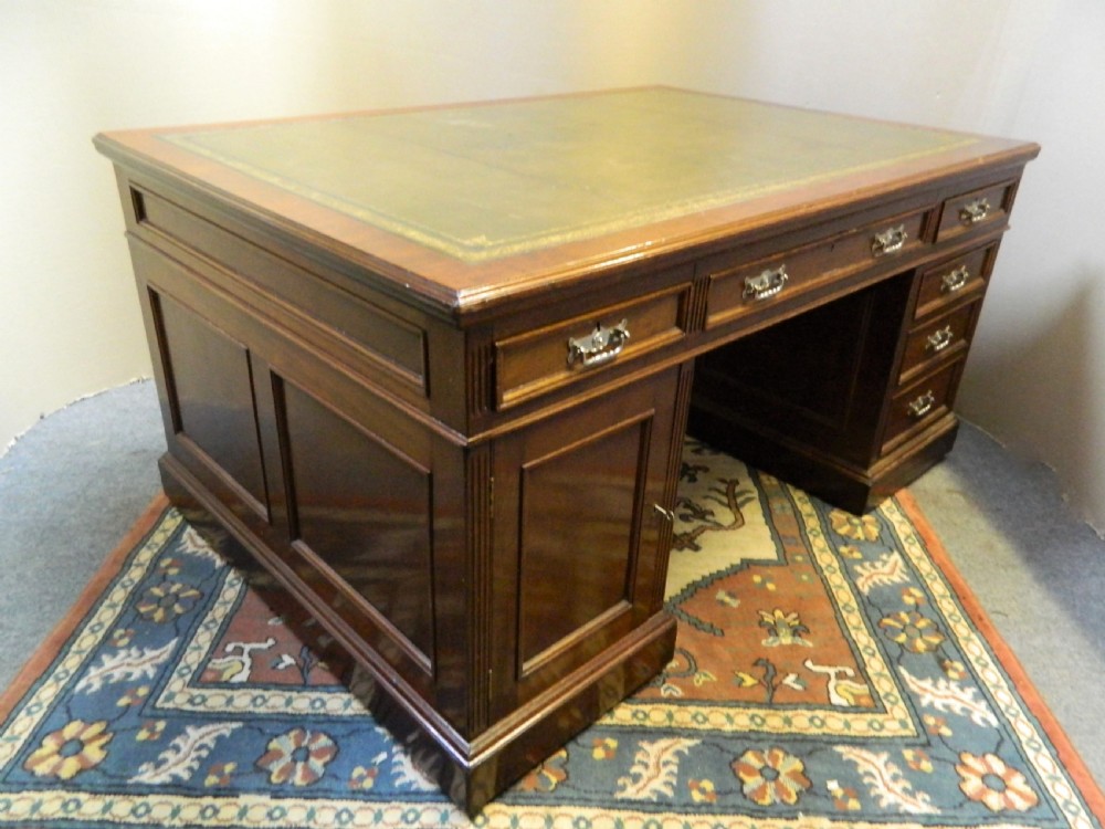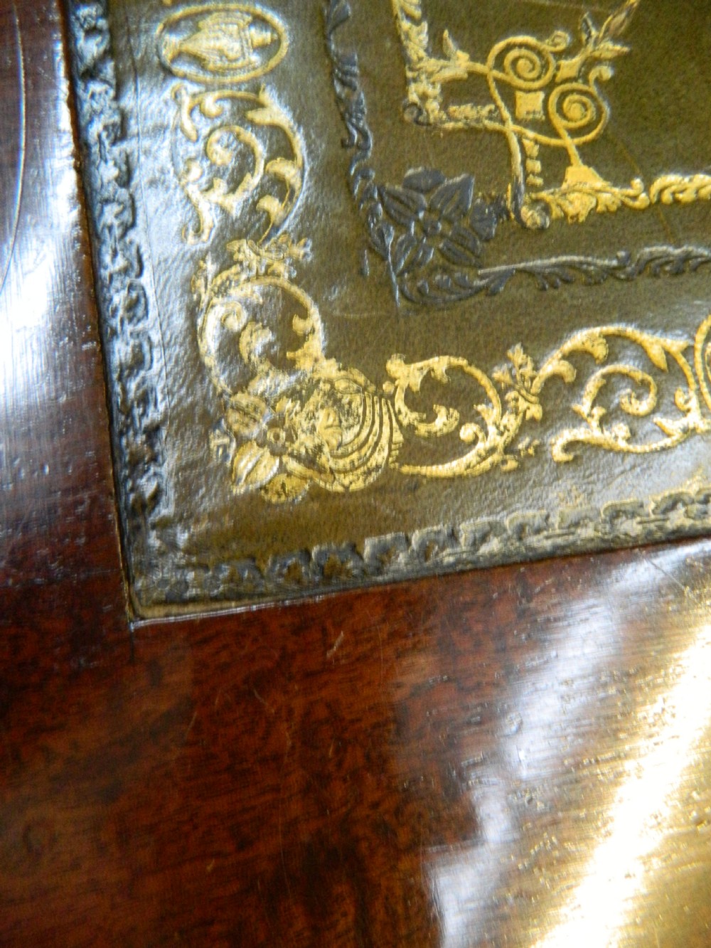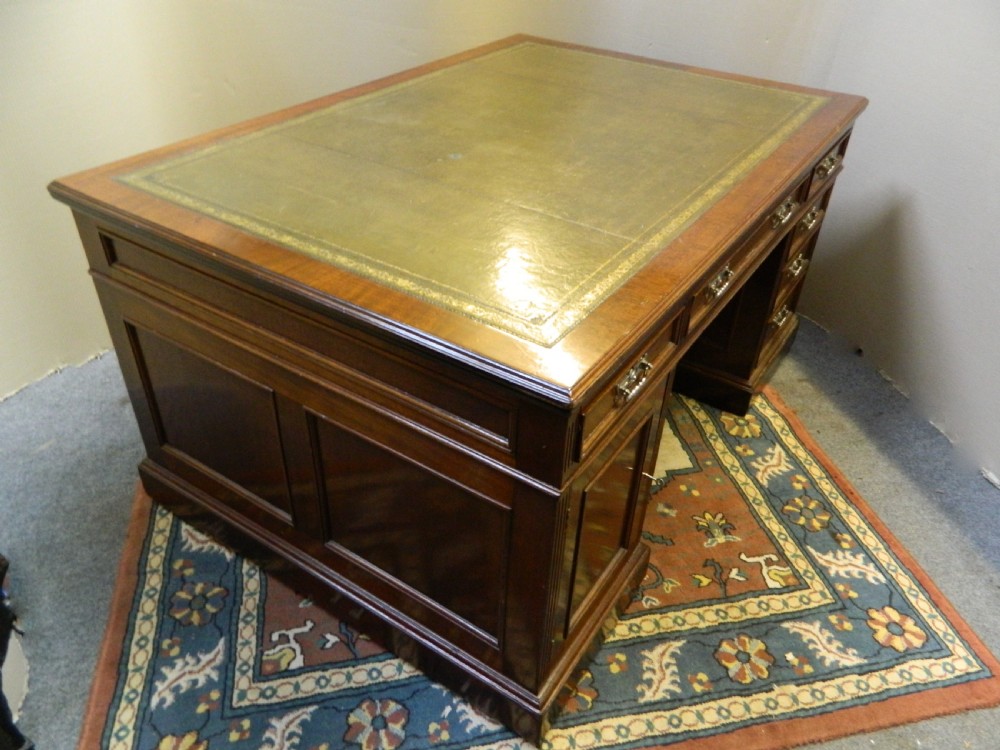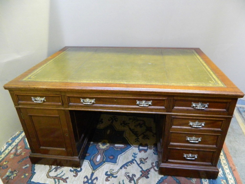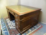 with marks / scuffs to the woodwork and some wear to the leather writing surface but nothing to detract from this handsome desk which is overall good, sound condition.