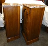 Good quality pair of Victorian bedside cabinets in beautifully figured walnut with marble tops.