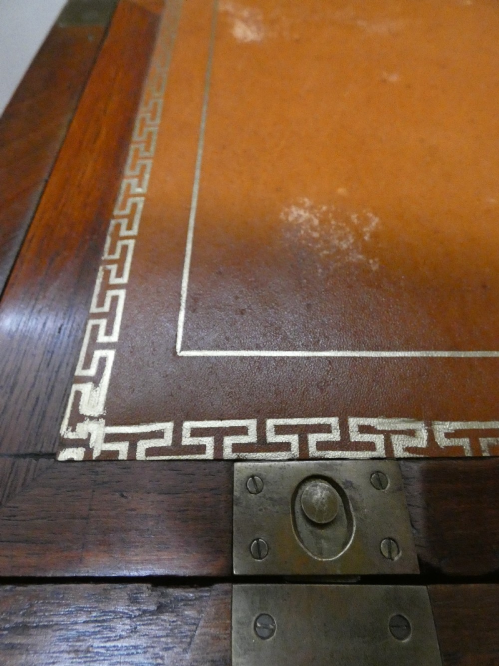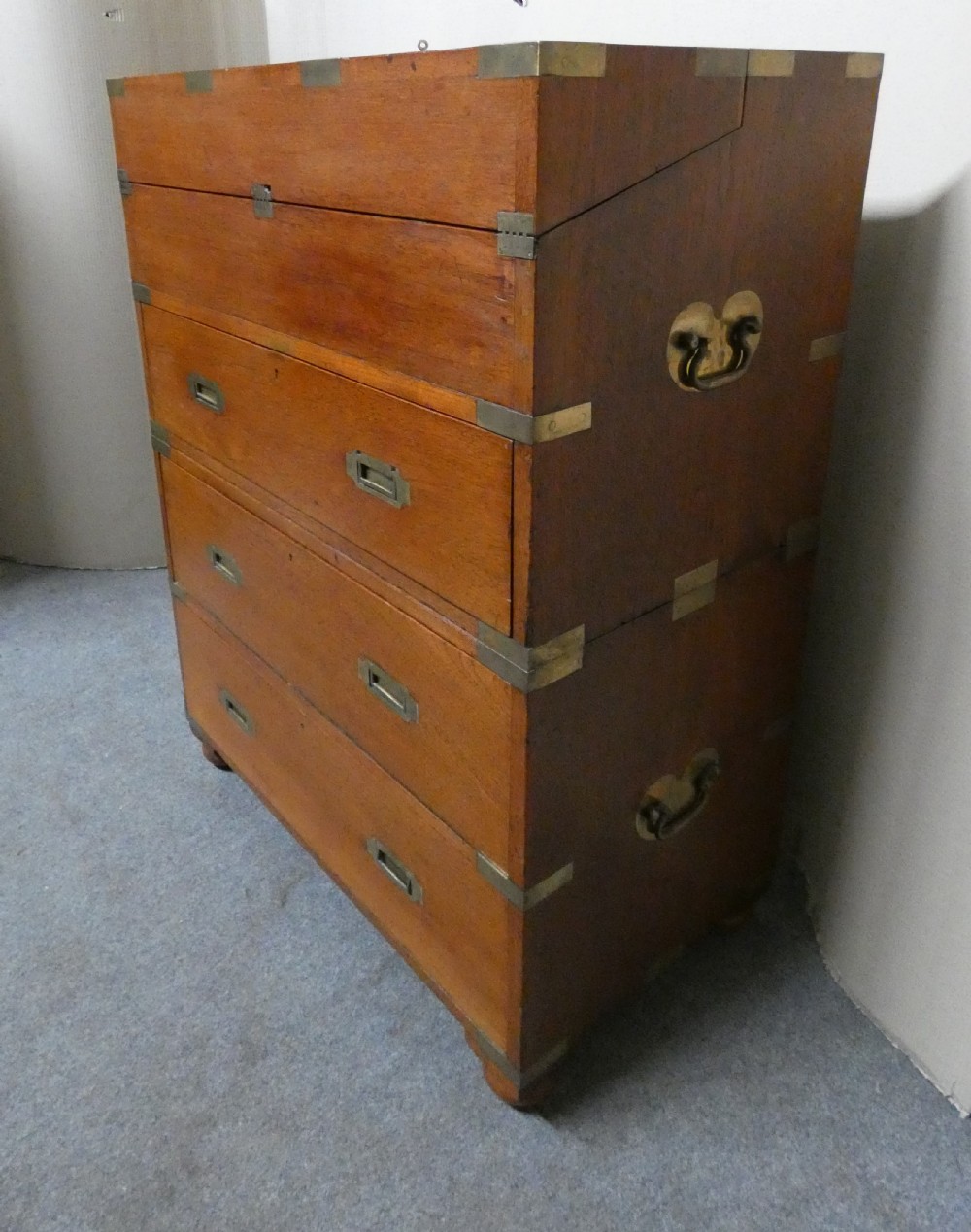 With normal marks, scuffs, wear and some historic repairs, all as one would expect with an item of campaign furniture but overall this very handsome chest is in good, sound condition and needs to be seen to be fully appreciated.