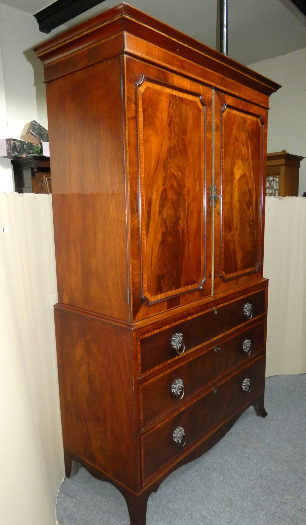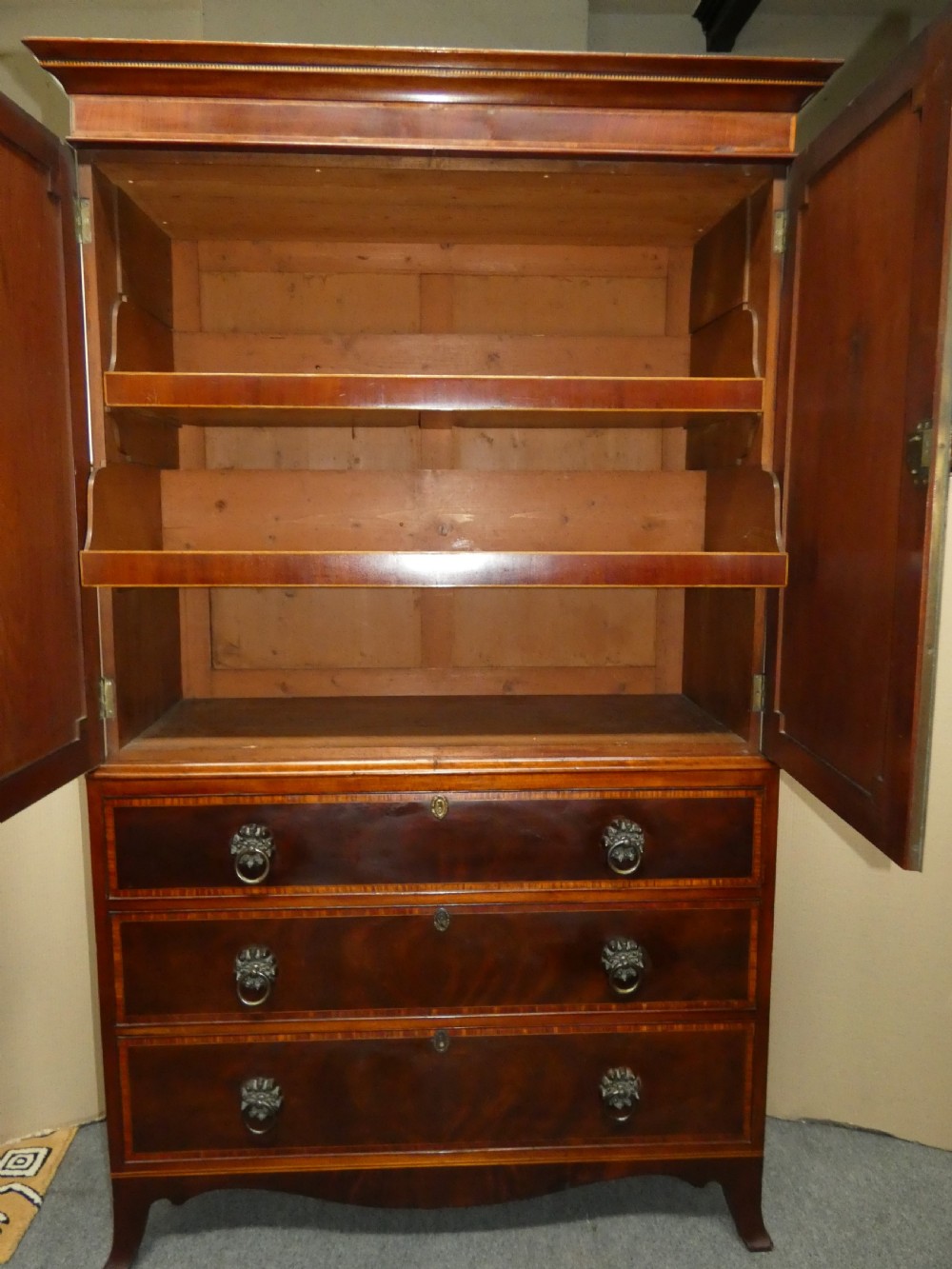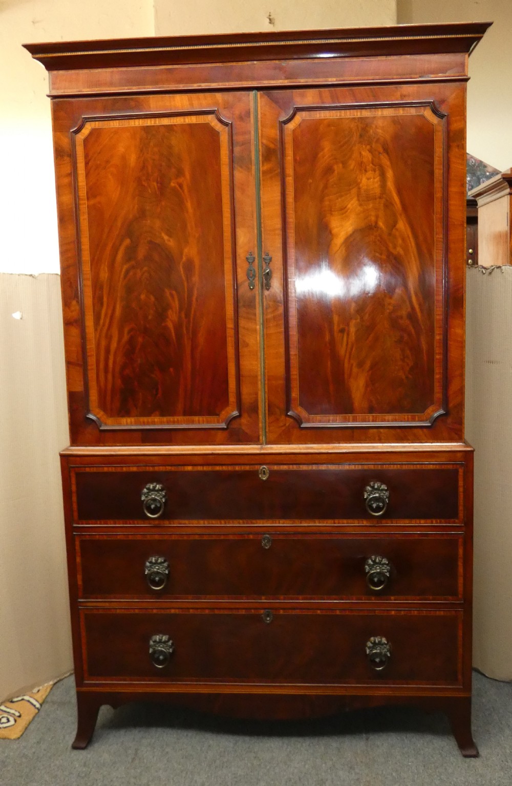 Very handsome Georgian mahogany linen press.