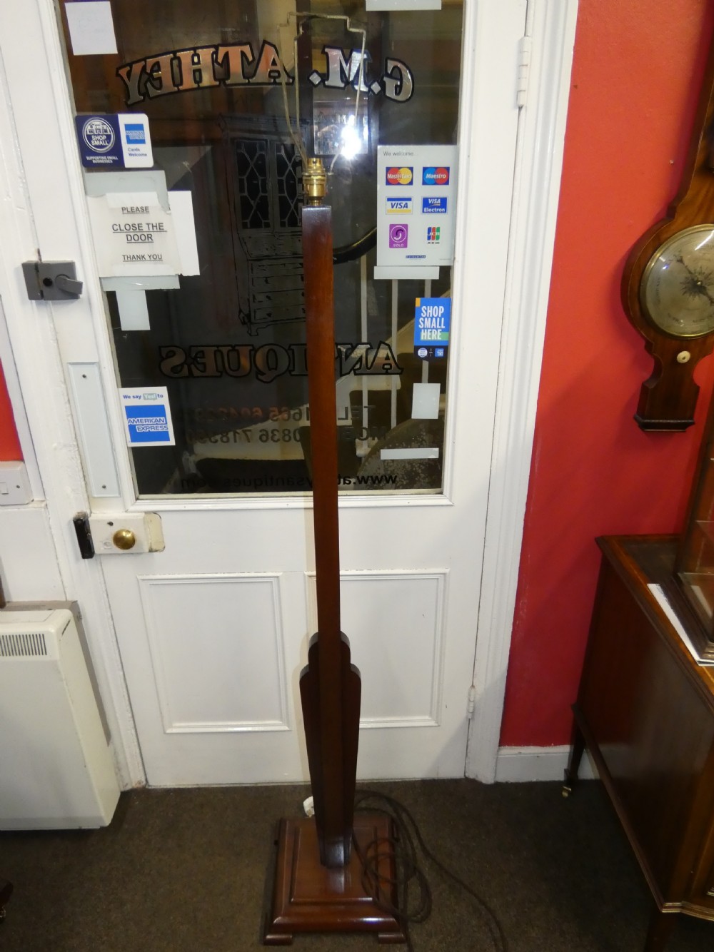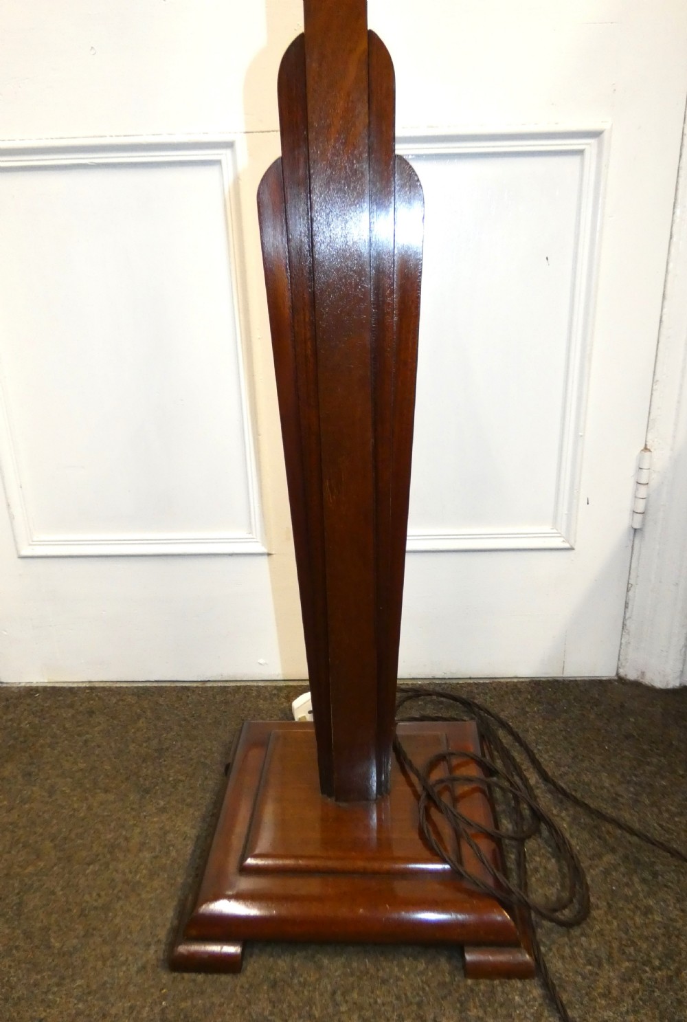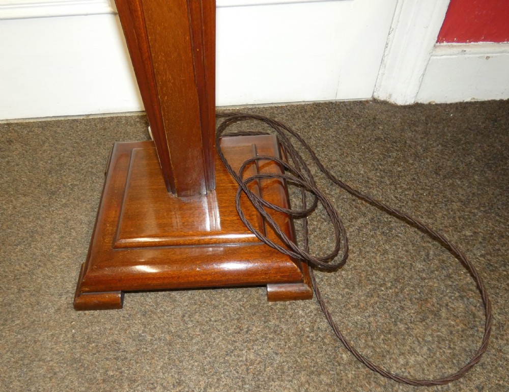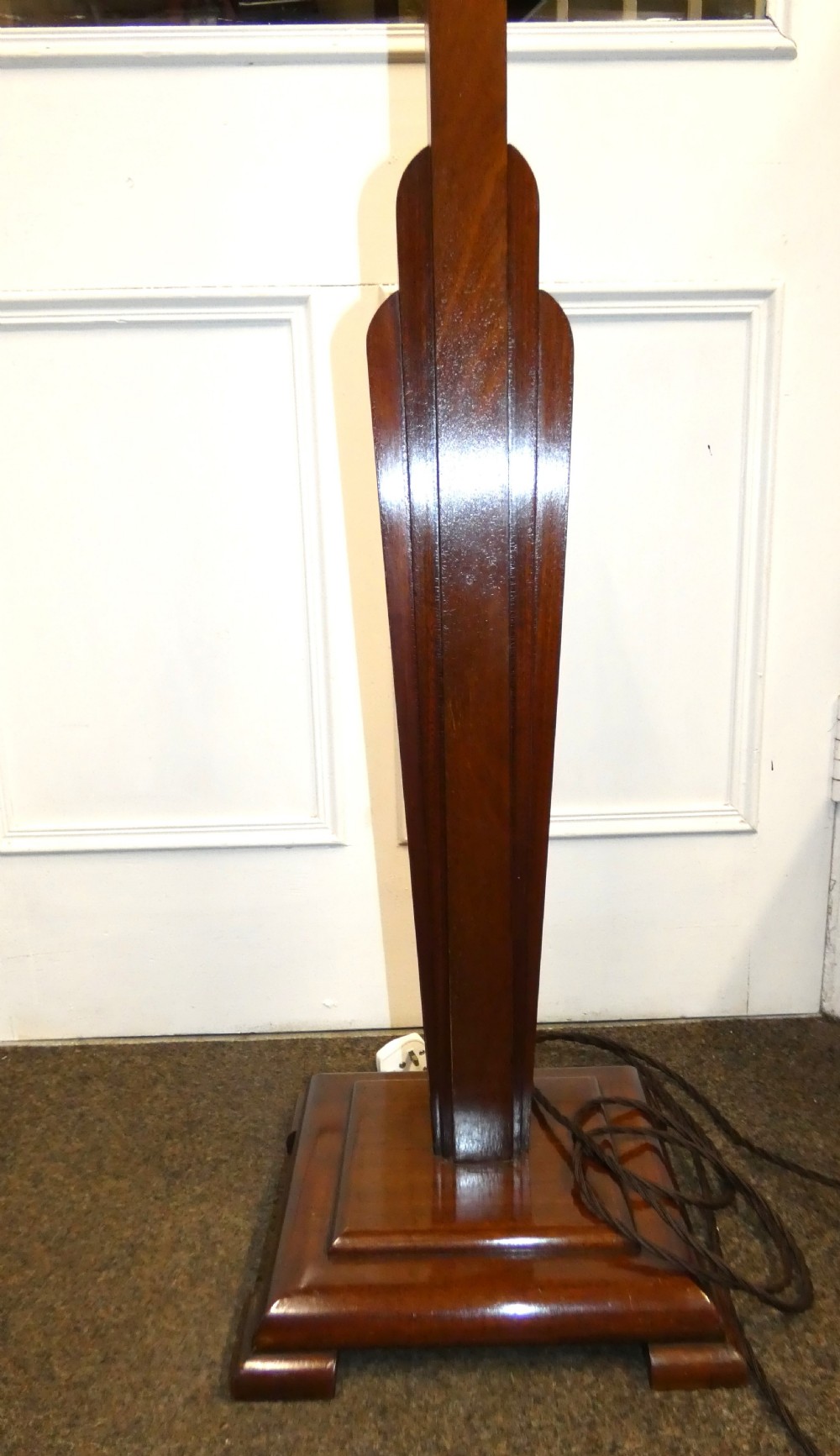 Mahogany Art Deco floor standing lamp / standard lamp which has been PAT tested and rewired to keep its great authentic look.