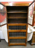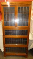 This example actually comes in two parts, the top with two leaded glass doors opening to a shelved interior. The base has three lift up leaded glass doors of varying heights.