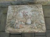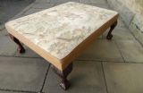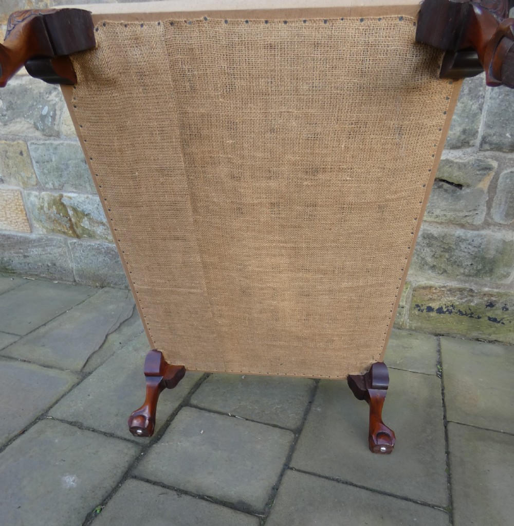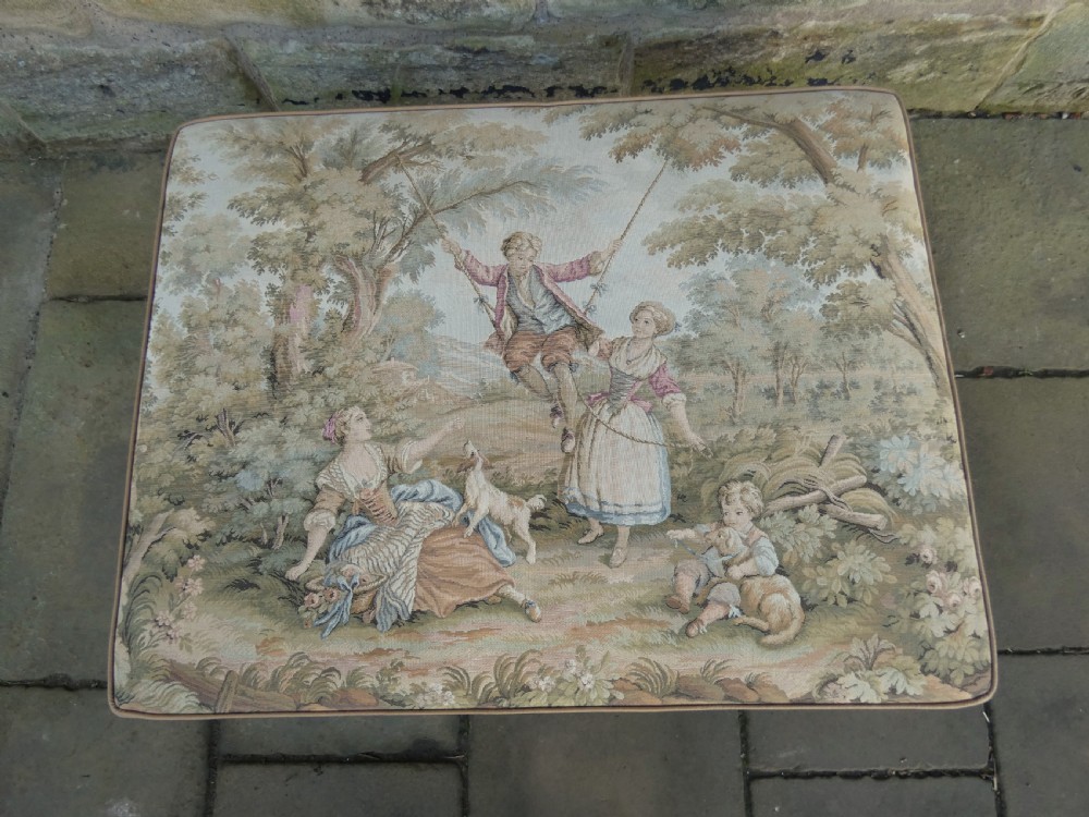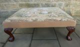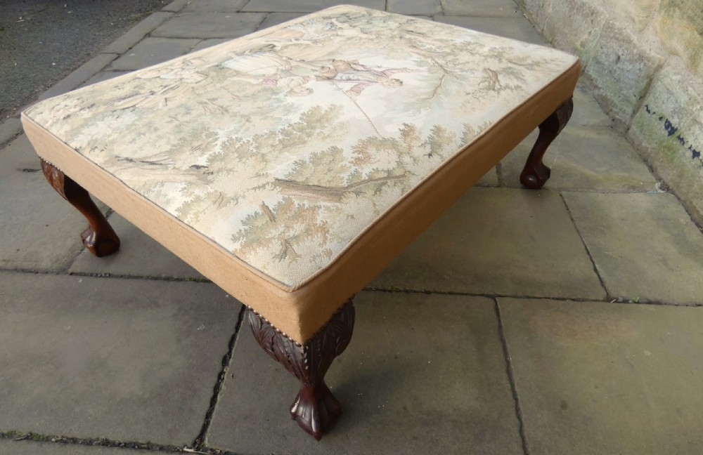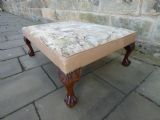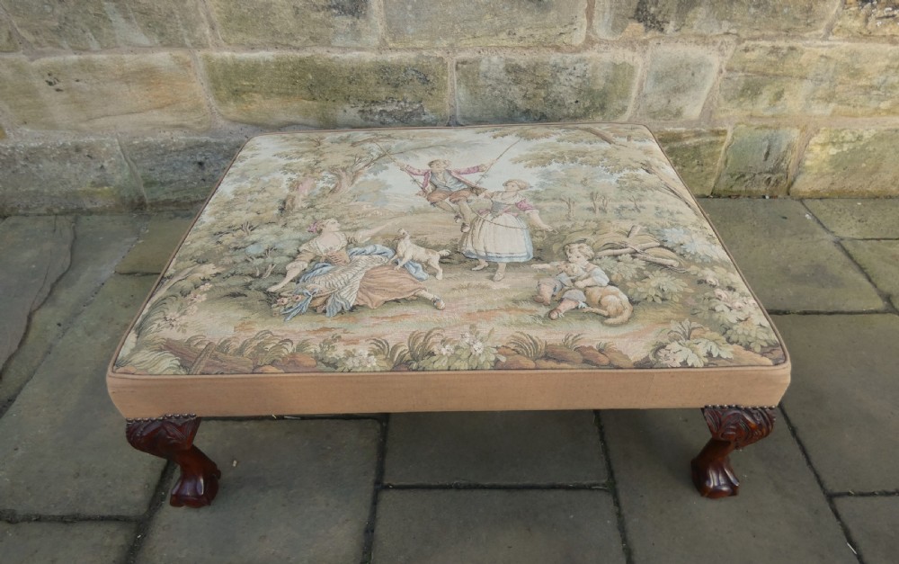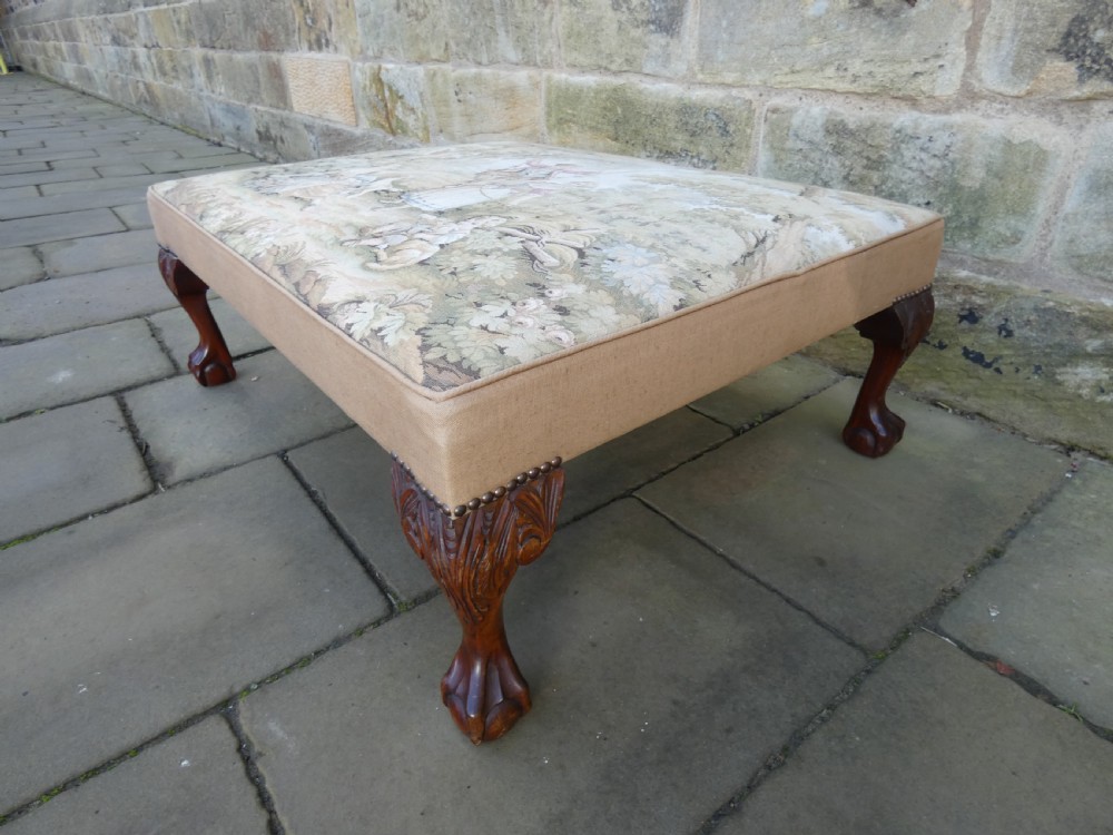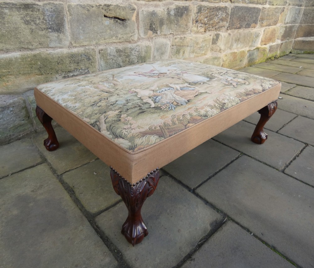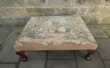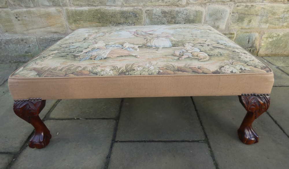 Lovely quality centre stool with Aubusson Jaquar tapestry cover, raised on mahogany leaf carved legs terminating in ball and claw feet.